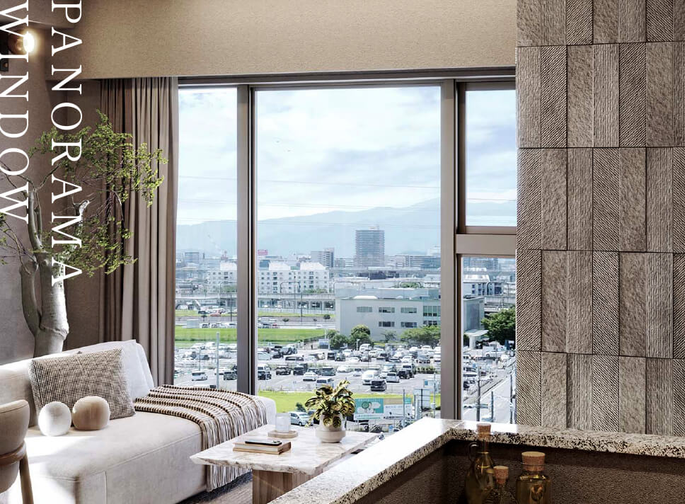 パノラマウィンドウ3面開口、採光・通風に優れた