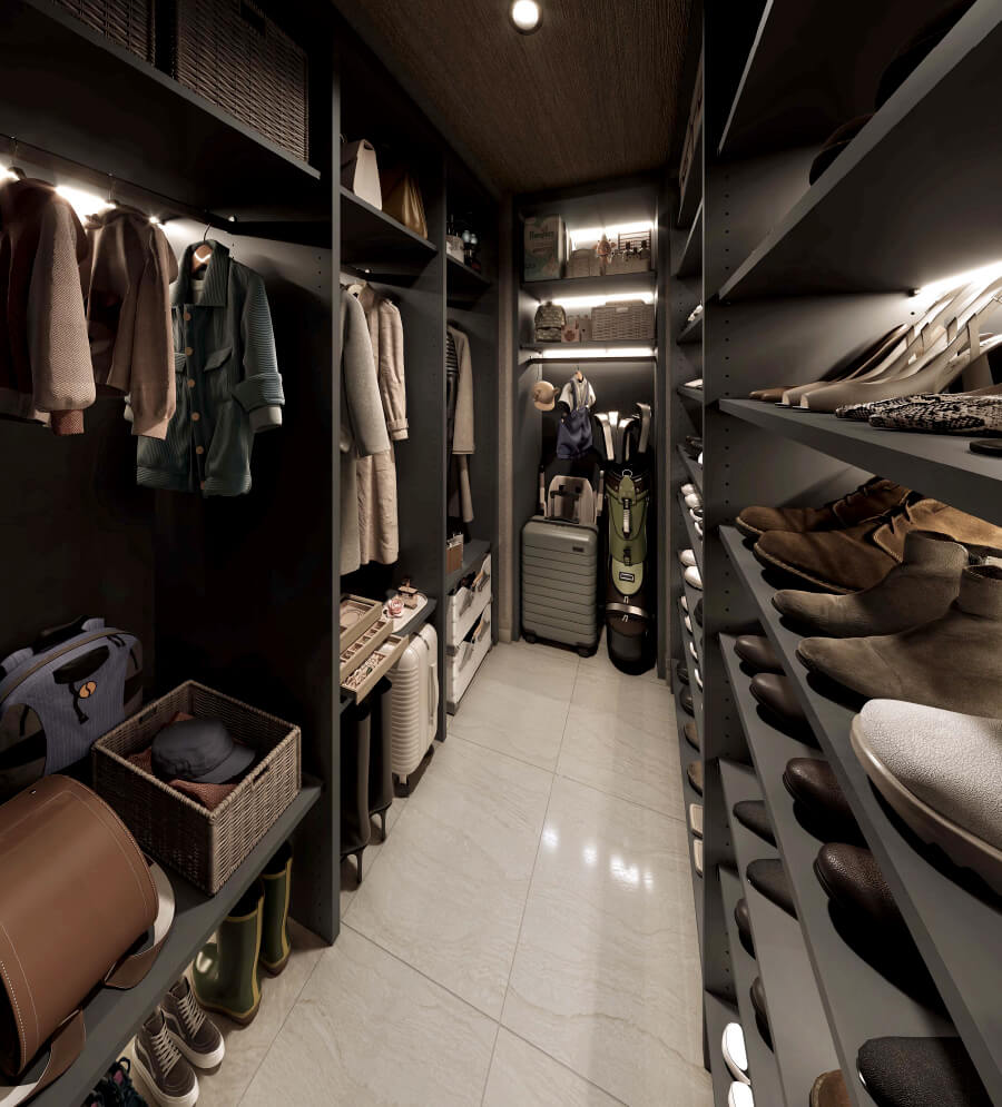 ウォークインクローゼット見せる収納と隠す収納で使いやすさにこだわった