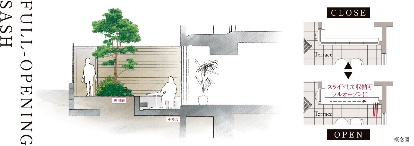 + 折れ戸タイプ全開放サッシ