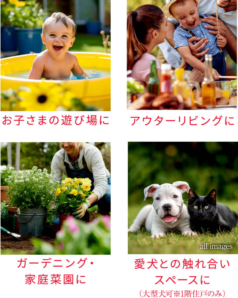 1階住戸ならではのアウター空間を備えた
