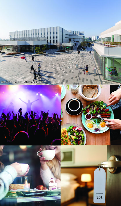 国家戦略特区・国土交通省スマートシティモデル事業。ショッピングやグルメを楽しめるだけでなく、ホテル・イベントホール・ライブ会場・文化体験商業施設を備え、多彩なカルチャーの発信拠点として期待されています。また、研究開発施設・先端医療研究センター・コンベンション施設なども整備され、世界をリードする国際産業拠点としても、新たなイノベーションを提供。